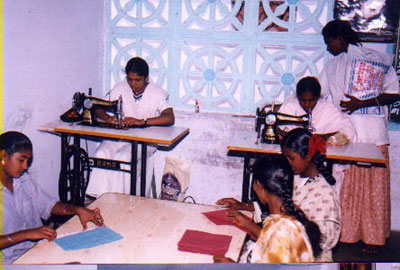 The Centre set up a two-wheeler mechanism Unit for Boys and a Tailoring Unit for girls in 2000. Since 2000 more than 300 male and female youth have successfully completed their training. With a view to extending these services to  more villages, the Centre has established three  ‘ Tailoring and Dress making and Designing  Training units for young women  and one Computer training unit for  male and female  children and youth in three villages in our project area.These programmes are sponsored by the Jan Shikshan Sansthan, at  Madurai, Ministry of Human Resource Development,Government of India. Our centre is accredited by the above governmental organization for organising ‘Non formal employment training for rural  and urban youth and women.